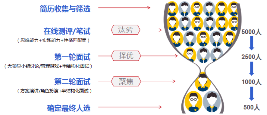 瀚德中國針對當下校園招聘現(xiàn)狀,開發(fā)出適用于畢業(yè)生的經(jīng)典素質模型,并通過能力測驗、評價中心、候選人分析等定制化服務,為各大企業(yè)提供以結果為導向的精準校園招聘服務,確保畢業(yè)生與企業(yè)發(fā)展的高匹配度。
